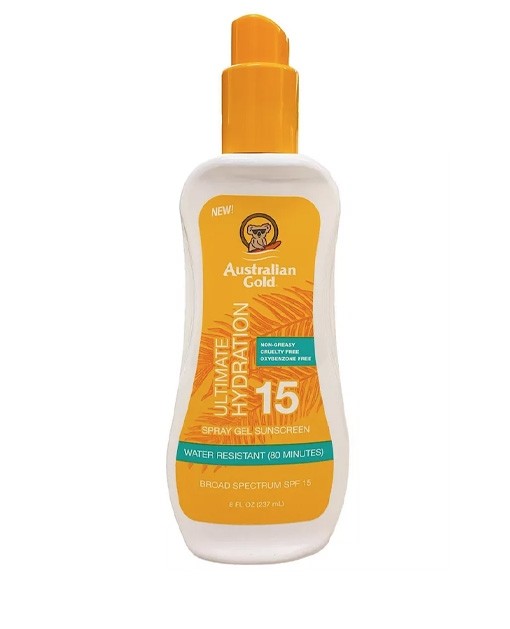 Australian Gold Ultimate Hydration SPF15 Spray Gel Sunscreen è una crema spray solare idratante resistente all'acqua con fattore di protezione SPF15. Offre una protezione alta contro l'aggressione dai raggi ultravioletti prevenendo rischi di bruciature. La sua formula arricchita d'ingredienti idratanti favorisce un'abbronzatura più veloce e protetta. Ideale per le primissime esposizioni al sole protegge la pelle dalle scottature e idrata in profondità l'epidermide donando un aspetto vellutato come la seta.